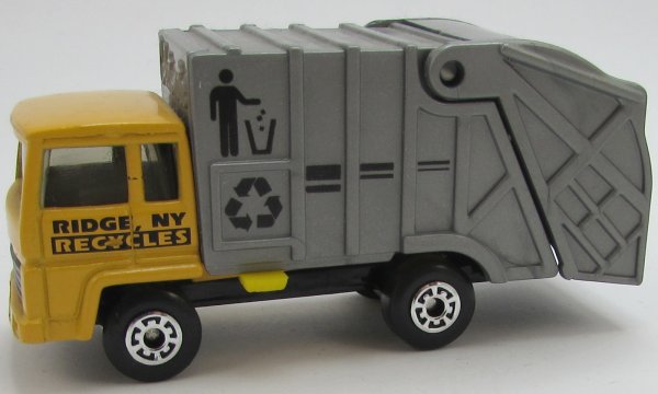 light orange, silver-gray dump, silver-gray hatch, yellow trigger, with CAUTION at rear, with COLECTOMATIC at front of dump, RIDGE NY deco |