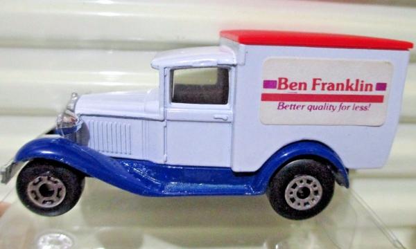 white, blue chassis, red textured roof, KG license plate, BEN FRANKLIN labels deco |