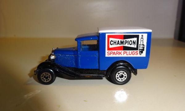 blue, black chassis, white textured roof, KG license plate, CHAMPION labels deco |