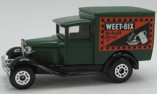 dark green, black chassis, dark green textured roof, KG license plate, WEET-BIX / SANI-TARIUM HEALTH FOODS deco |