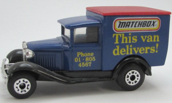 blue, black chassis, red textured roof, KG license plate, MB THIS VAN DELIVERS with phone # on cab doors deco |