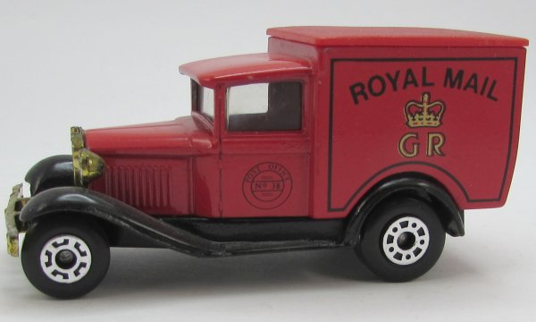 red, black chassis, red textured roof, KG license plate, ROYAL MAIL deco |