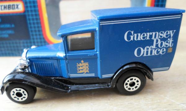 blue, black chassis, blue textured roof, KG license plate, GUERNSEY POST OFFICE deco |
