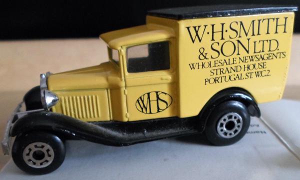 light yellow, black chassis, black textured roof, KG license plate, W.H. SMITH and SON LTD. deco |