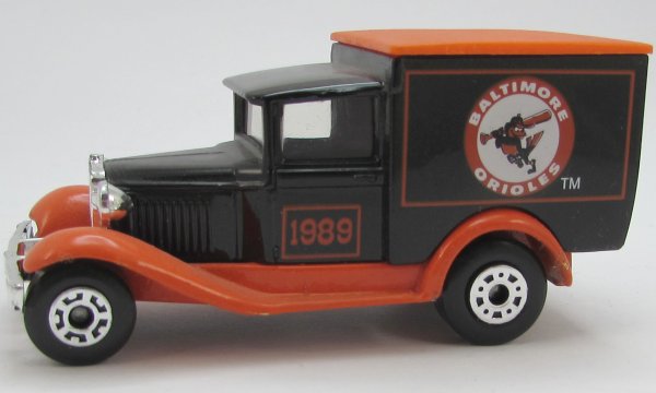 black, orange chassis, orange textured roof, KG license plate, BALTIMORE ORIOLES 1989 deco |