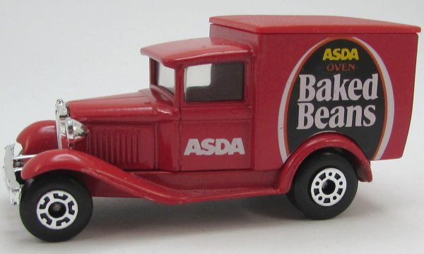 red, red chassis, red textured roof, KG license plate, ASDA BAKED BEANS deco |