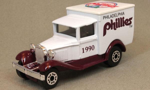 white, maroon chassis, white smooth roof, KG license plate, PHILADELPHIA PHILLIES 1990 deco |