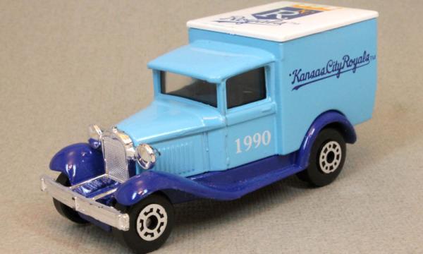light blue, blue chassis, white smooth roof, KG license plate, KANSAS CITY ROYALS 1990 deco |