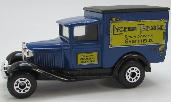 dark blue, black chassis, black textured roof, KG license plate, LYCEUM THEATRE deco |