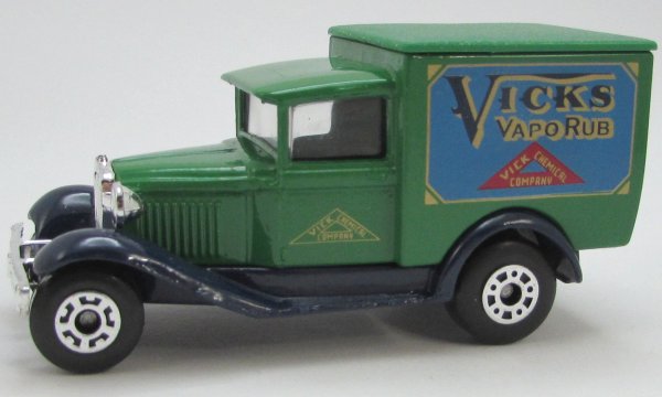 green, dark blue chassis, green textured roof, KG license plate, VICKS VAPO RUB deco |