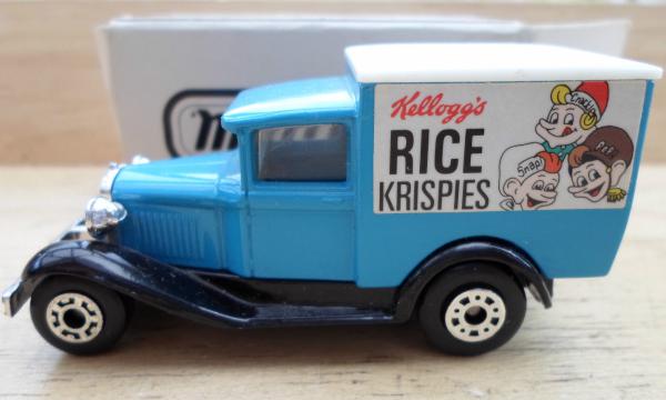 light blue, black chassis, white textured roof, KG license plate, KELLOGG'S RICE KRISPIES labels deco |