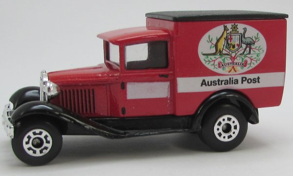 orange-red, black chassis, black textured roof, PC license plate, AUSTRALIA POST deco |