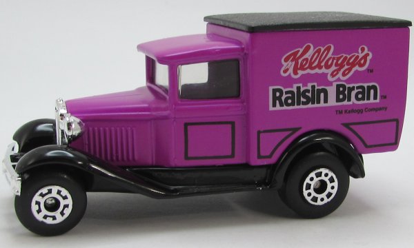 dark orchid, black chassis, black textured roof, KG license plate, KELLOGG'S RAISIN BRAN deco |