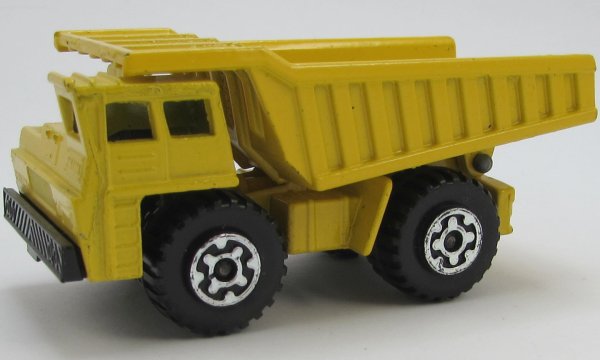yellow cab chassis, with brace behind cab, yellow dump, dark blue dump stop, die number 1, no tampo |