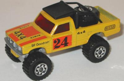 yellow, no front cast ridge, with front license plate, black textured roof or rollbar, 4X4, BF GOODRISH, 24 tampo |
