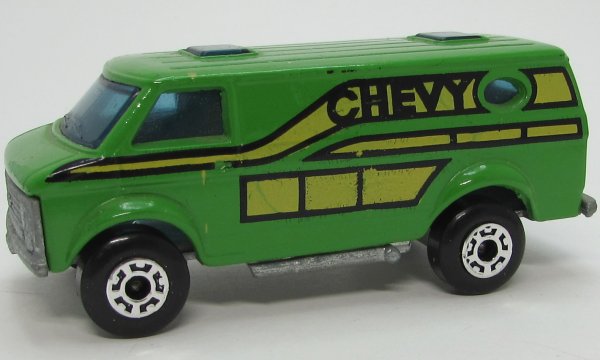 green, flat roof window rim, CHEVY and lemon stripes deco |
