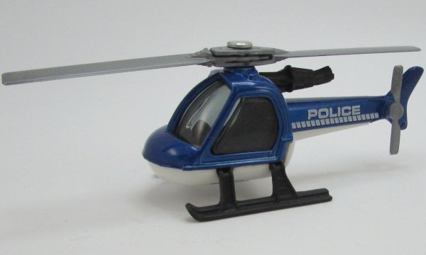 bright blue, silver-gray blades, chrome blade pin, black skis, POLICE / white dashes tampo |