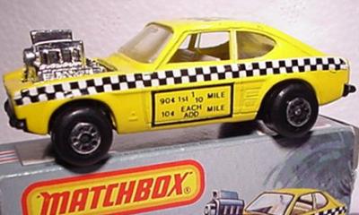Body yellow, MAXI TAXI (M upper left) roof, black and white checkers side tampo