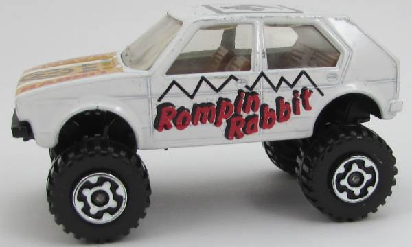 white, with tow hook, RABBIT 4x4 VW hood, ROMPIN RABBIT without tan stripe side tampo |