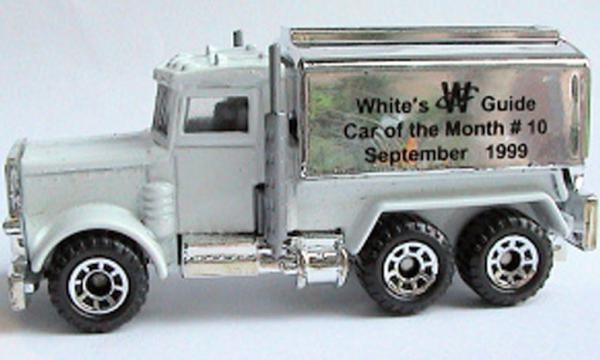 white, gray exhausts, chrome grille, front only fender braces, no cab tampo, silver tank, WHITE'S GUIDE SEP. 99 (black, left side only) tank tampo |