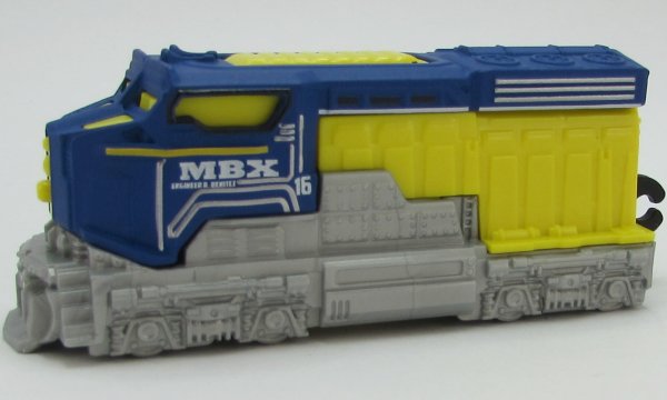 matte blue upper body, yellow midsection, gray lower body, black hook, MBX tampo |