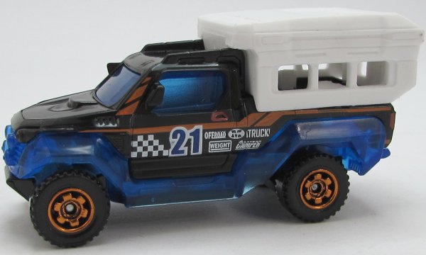 black, transluscent blue chassis, white canopy, 21, checkers and stripes tampo |