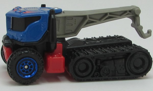 blue, black upper rear, black track area, gray boom, SHELTY'S TOWING and flames tampo |