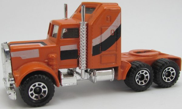 light orange, long rear panels, B tow hitch, white and black stripes, black and white on hood tampo |