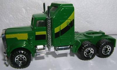 green, long rear panels, B tow hitch, yellow and black stripes, no on hood tampo |