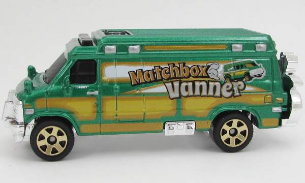 metallic green, motorcycle on rear, MATCHBOX VANNER tampo |