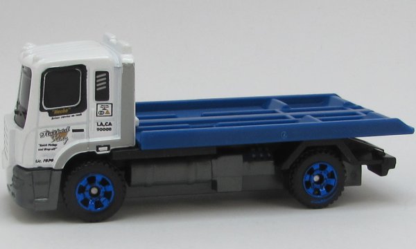 white cab, black chassis, blue flatbed, FLATBED KING tampo |