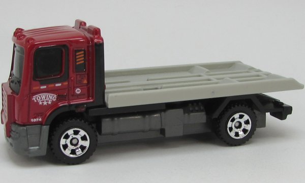 maroon cab, black chassis, gray flatbed, TOWING tampo |