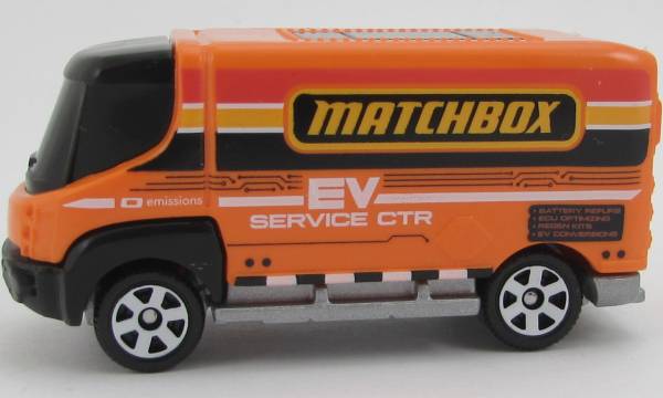 orange, black fenders, MATCHBOX EV SERVICE CTR tampo |