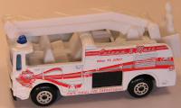 red and white, J.D.F.D. FIRE RESC. 25, MB2000 on windshield