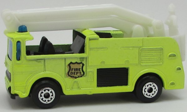green-yellow, blue roof lights, white boom, FIRE DEPT. in gold shield tampo |