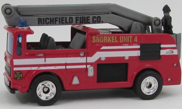red, blue roof lights, silver-gray boom, RICHFIELD FIRE CO., detailed trim, black fireman tampo |