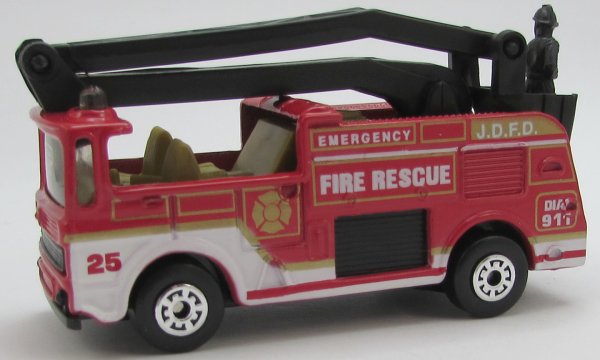 | red and white, J.D.F.D. FIRE RESC. 25, MB2000 on windshield |