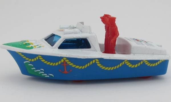 white deck, blue hull, hatch on roof, red figures, rope pattern, 123, etc. deco |