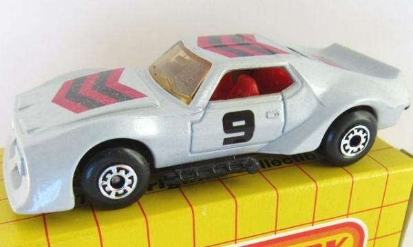 light pearly silver, red and black hood and roof stripes, AMX on trunk, 9 on sides tampo |
