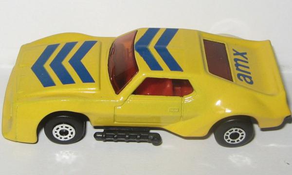 | yellow, blue hood and roof stripes, AMX on trunk |