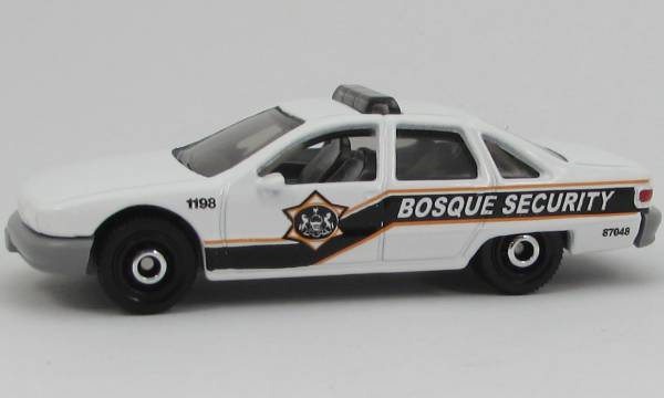 white, BOSQUE SECURITY / TAXI and misc signage tampo |