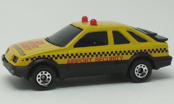 yellow-orange, black lower body, black hatch, red roof lights, with sunroof cast, AIRPORT SECURITY tampo |