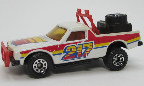 white, red bumper and roll bar, black rear load, 217 tampo |