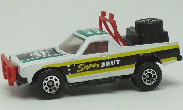 white, red bumper and roll bar, black rear load, BRUT, FABERGE tampo |