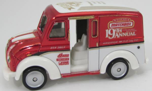 | chrome red and white, white, MATCHBOX 19th ANNUAL GATHERING with roof lettering |