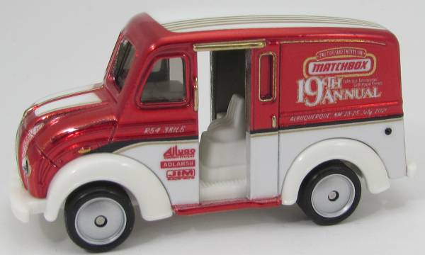 | chrome red and white, white, MATCHBOX 19th ANNUAL GATHERING without roof lettering |