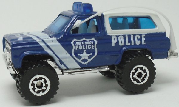 blue and white, blue roof light, chrome grille, white antenna, POLICE UNIT 14 tampo |