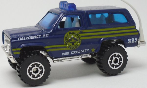 blue, blue roof light, chrome grille, white antenna, ROCKY MOUNTAIN RESCUE 682, green stripe tampo |