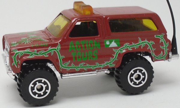 red-brown, amber roof light, chrome grille, black antenna, ACTION TOURS tampo |