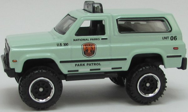 mint green, smoke roof light, black grille, no antenna, NATIONAL PARKS PARK PATROL tampo |
